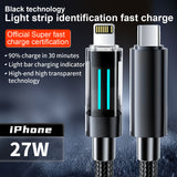 Power up your iPhone or iPad rapidly with this advanced 27W USB-C to Lightning Fast Charging Cable. Featuring a unique dual light bar LED indicator to display charging speed and a robust braided design, this cable is engineered for efficient charging, durability, and seamless compatibility with your Apple devices.