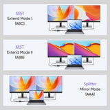 - Windows 10 or later is required for 2 extended screens support. macOS does not support MST, and only allows 2 DP outputs in mirrored mode.
